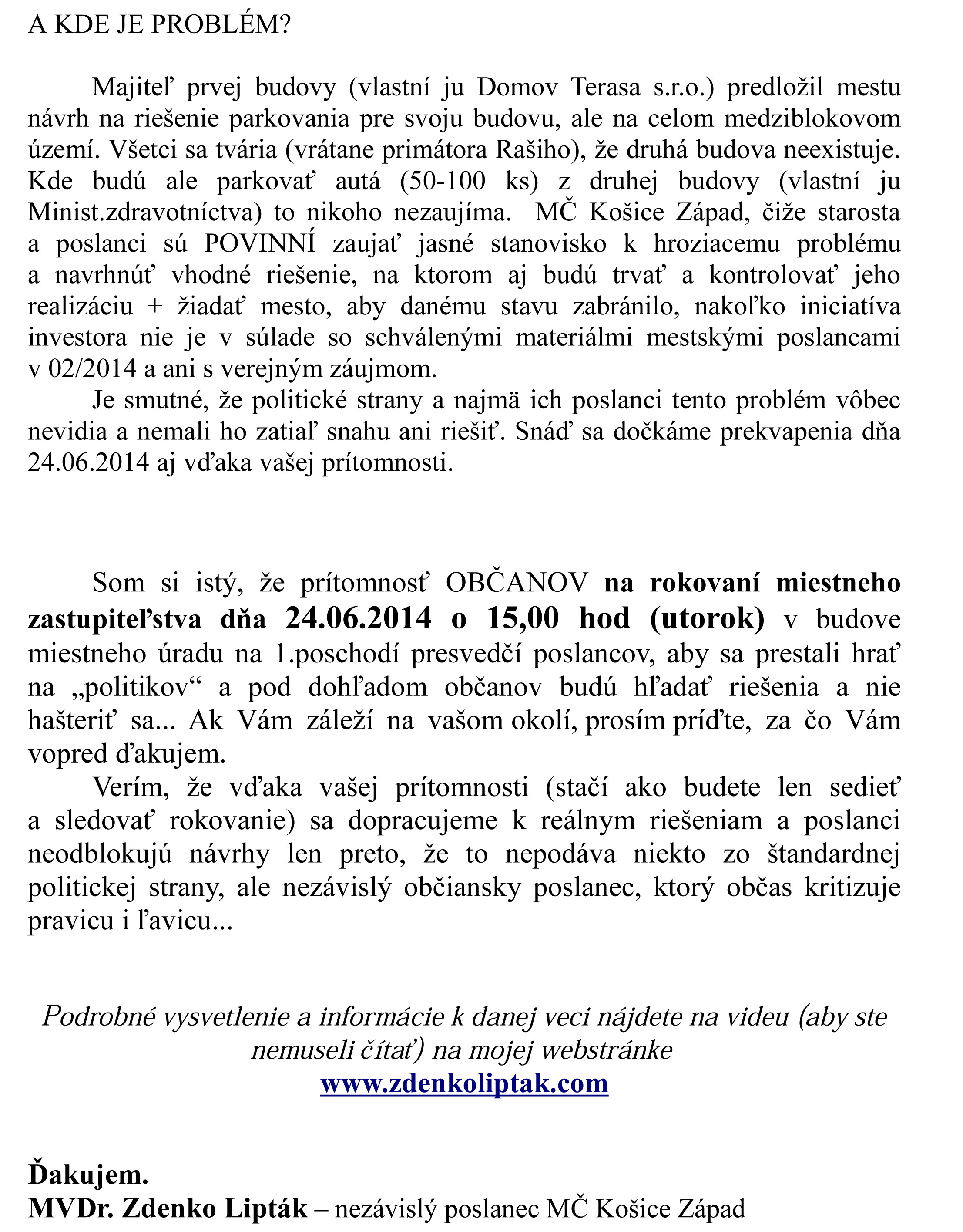 v utorok diskutoval, lebo ako poslanci sme POVINNÍ spolu so starostom, zaujať k tejto hrozbe jasné stanovisko.