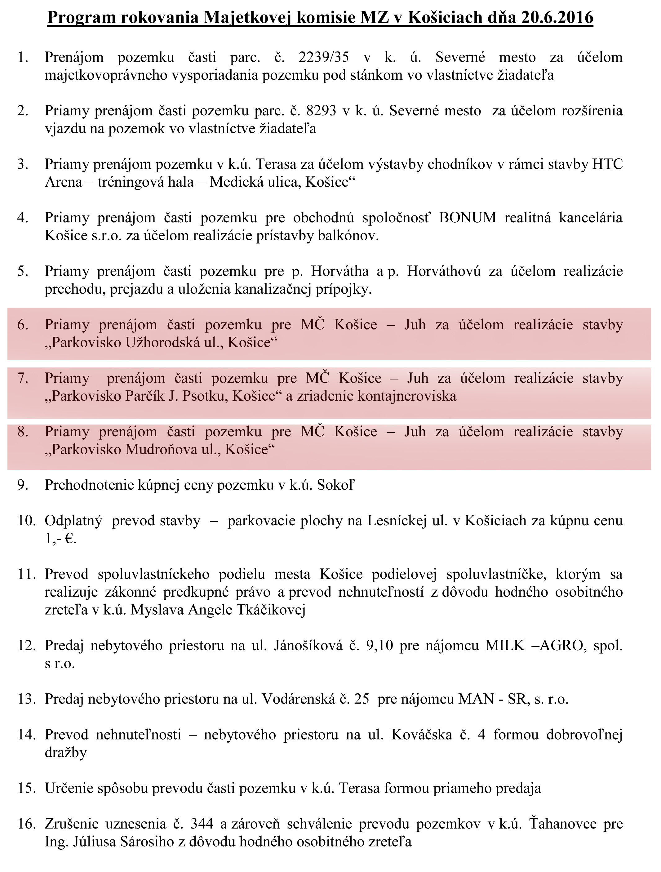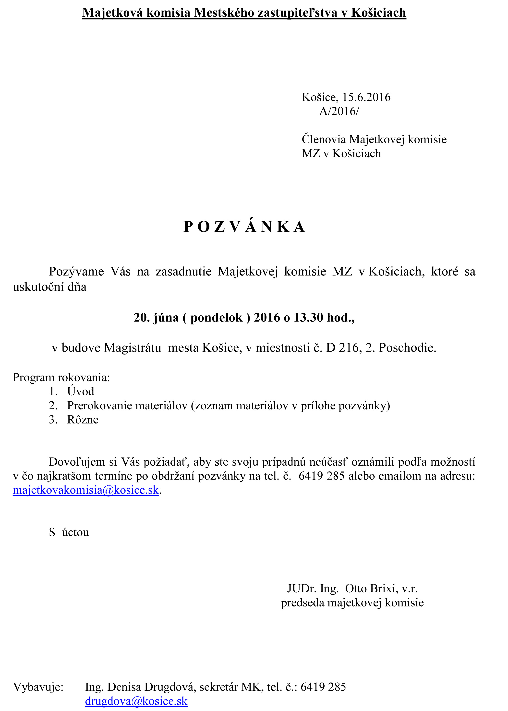 Dnes 20.06.2016 o 13,30 hod. (!!!!) má o tomto rokovať aj Majetková komisia pri mestskom zastupiteľstve