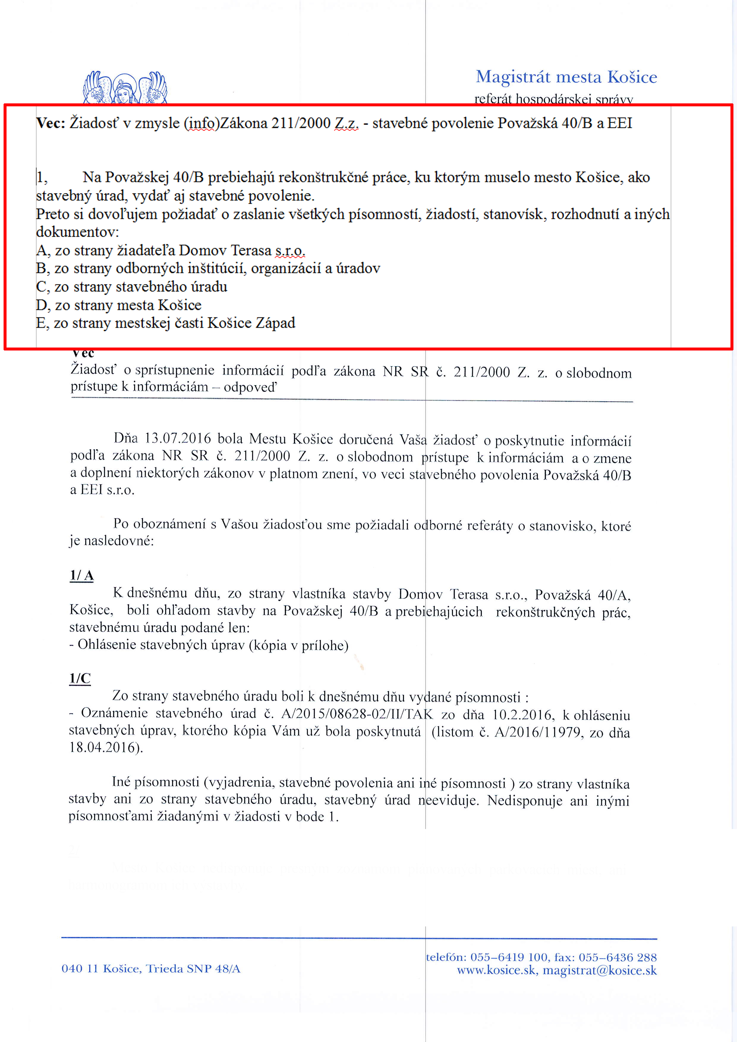 A prečo toto divadielko stavebného úradu, čiže mesta Košice ?