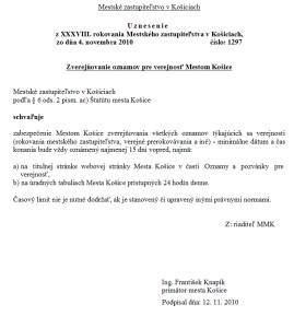 Linka na článok ohľadom daného uznesenia s 15-dňovou oznamovacou povinnosťou