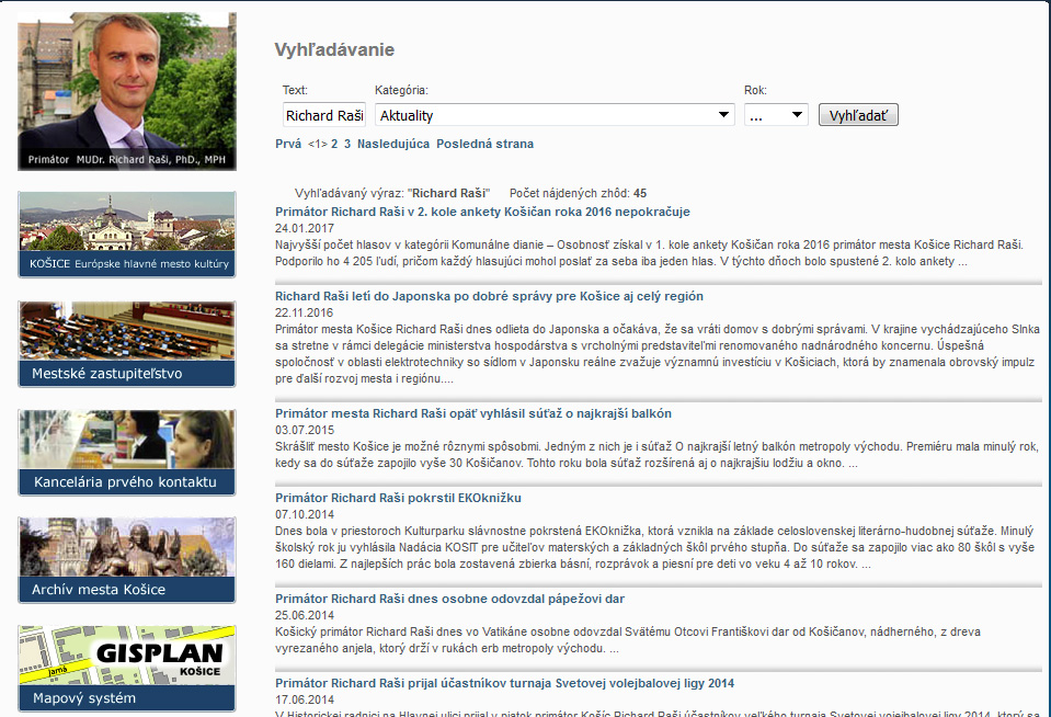 Celá odpoveď mesta Košice z roku 2016 – http://www.tomasbenetin.sk/pouzitelne-vyhladavanie-na-strankach-mesta-kosice-stale-chyba/
