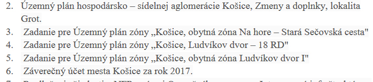 Je dôležité vyzvať poslancom mesta na najbližšom rokovaní, aby zastavili tieto čiastkové zmeny a vyzvali mesto, aby neobjednávalo ďalšie malé zmeny, pokiaľ nebude schválený veľký územný plán pre celé mesto Košice.