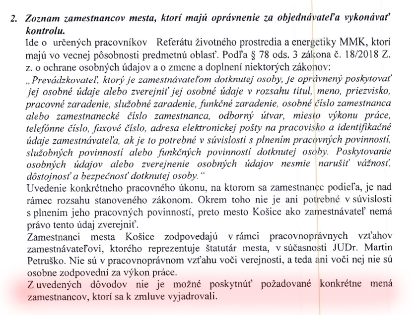 Odpoveď: …že nemôžem dostať mená zamestnancov, ktorý sa vyjadrovali k zmluve…