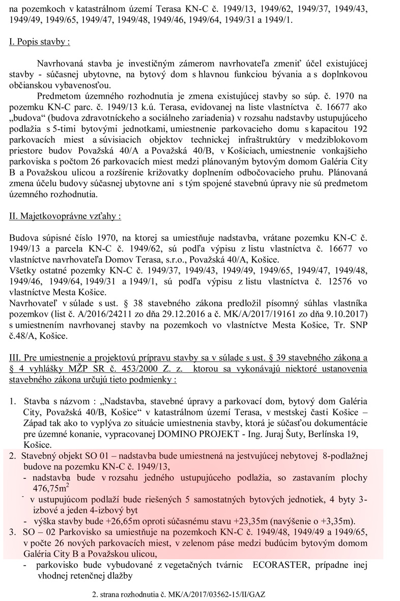 Apropo, ten kolos mohol postaviť aj inde, čo aj sám investor Domov Terasa sro 30.11.2017 na rokovaní priznal, ale keďže majitelia pozemkov chceli 200 eur za meter štvorcový, tak radšej kúpili pozemky o pár metrov ďalej od mesta Košice na čele s R.Rašim za 45 eur štvorák (4x lacnejšie).