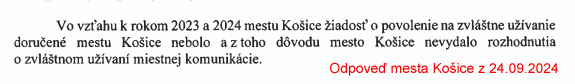 Túto odpoveď nepovažujem za odpoveď v zmysle zákona. Ak by bol na webstránke mesta Košice zoznam všetkých letných sedení, tak by bola odpoveď OK. Ale keďže nie je, považujem ju v rozpore so zákonom a tak trošku aj za arogantnú.